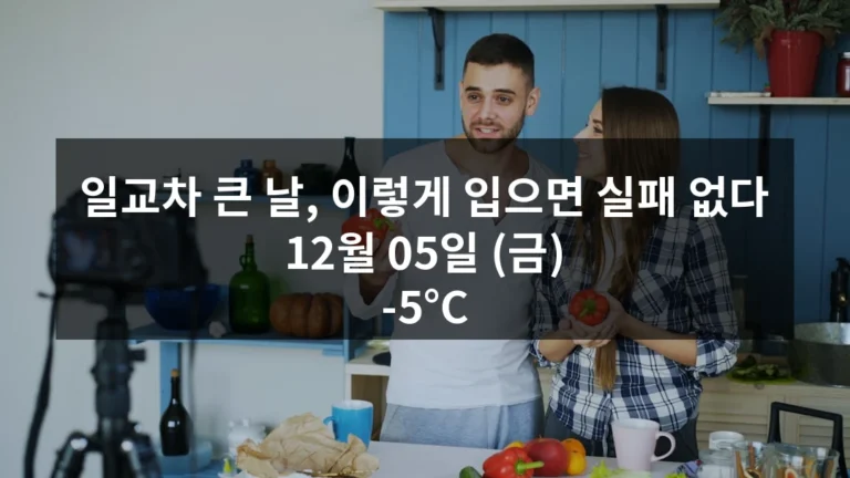 생활 속에서 이 주제가 중요한 이유 12월 5일 금요일, 오늘 기온은 8°C입니다. 이렇게 쌀쌀하지만 한겨울처럼 춥지는 않은 날씨는 옷차림을 결정하기 참 애매합니다. 많은 분들이 아침마다 옷장 앞에서 고민할 거예요. 어떤 옷을 입어야 할지 몰라 감기에 걸리거나, 혹은 너무 두껍게 입어…